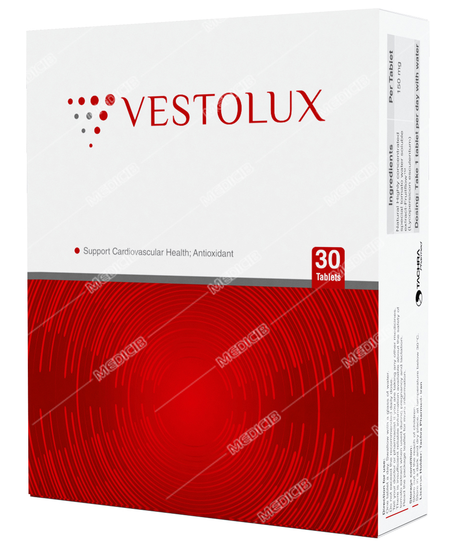 • هر قرص وستولوکس حاوی 150 میلی‌گرم عصاره طبیعی گوجه فرنگی (Fruitflow) است. این ترکیب با روش اولترافیلتراسیون به دست می‌آید که حاوی اجزای طبیعی گوجه فرنگی است که یکی از آن‌ها لیکوپن می‌باشد. یکی از مهم ترین موارد مصرف وستولوکس کمک به حفظ سلامت قلب و پیشگیری از ابتلا به بیماری‌های قلب و عروقی به ویژه در افراد در معرض خطر مانند افرادی که فعالیت ورزشی و تحرک کمی دارند، افرادی که استرس بالایی دارند، خانم‌ها به ویژه در سنین بالاتر، افراد سیگاری و افراد دارای اضافه وزن و به طور کلی افرادی که سبک زندگی ناسالمی دارند، است. عصاره گوجه فرنگی به عنوان ترکیب اصلی این مکمل، دارای خاصیت آنتی اکسیدانی قوی است که با خنثی سازی رادیکال‌های آزاد، ریسک ابتلا به بسیاری از بیماری‌های مزمن از جمله سرطان را کاهش می‌دهد. علاوه بر این، وستولوکس می‌تواند به تنظیم فشار و هم چنین کلسترول خون نیز کمک کند.